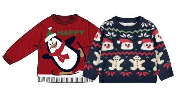 Vai al contenutoMaglia in tricot con simpatici jacquard in tema natalizio. Ideale per tutto il periodo delle feste.