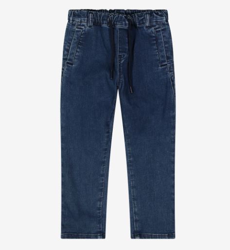 Pantalone in denim stretch. Comfort fit con cintura elasticizzata e coulisse, tasche a filetto sul davanti. Ricamo logo su tasca dietro. Capo ideale e pratico per il tempo libero.